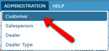 Select ADMINISTRATION on the main menu, then select Customer on the sub-menu.