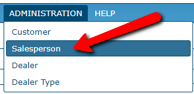 Select ADMINISTRATION on the main menu, then select Salesperson on the sub-menu.