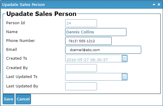- Click on the "Update Sales Person" button at the bottom of the page. A new window will pop-up (verify that your browser is set to allow pop-ups).
