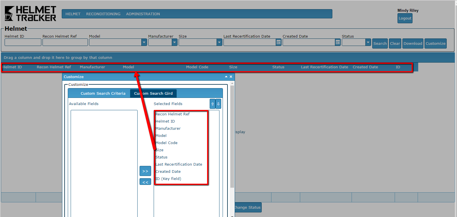 To customize your Search Grid: