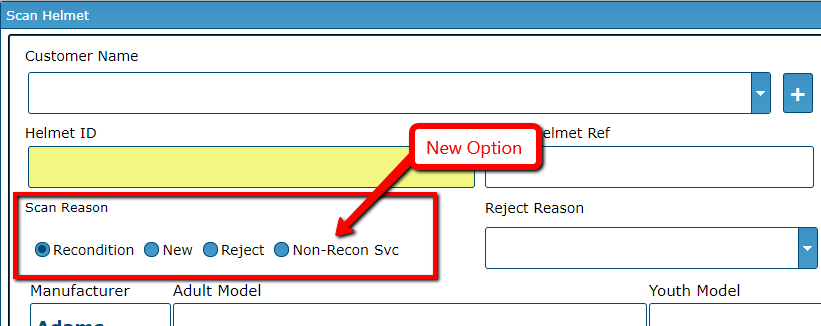 Option for Non-Reconditioner Services on Scan Helmet screen