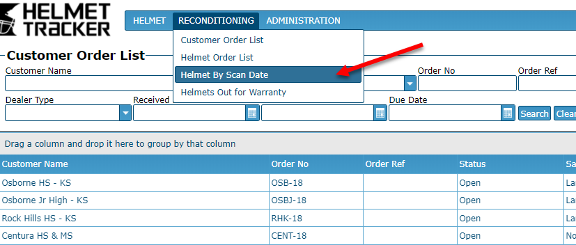 Under the "Reconditioning" tab, select the "Helmet By Scan Date" option: