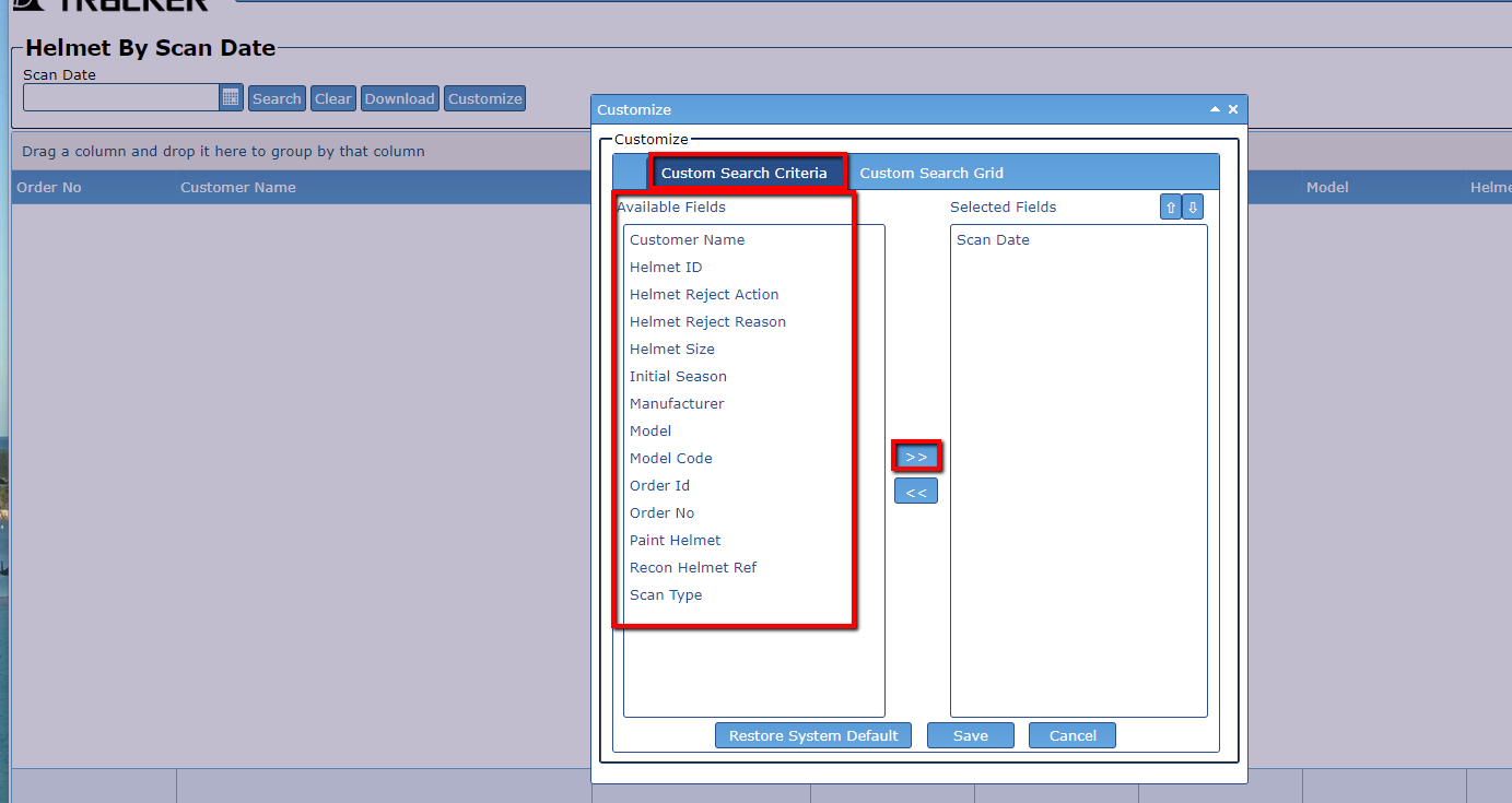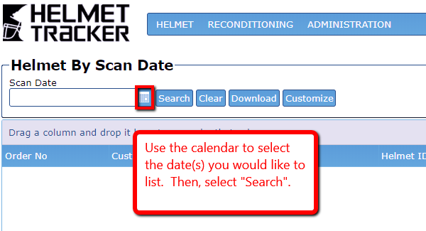 To search for Helmets by Scan Date: