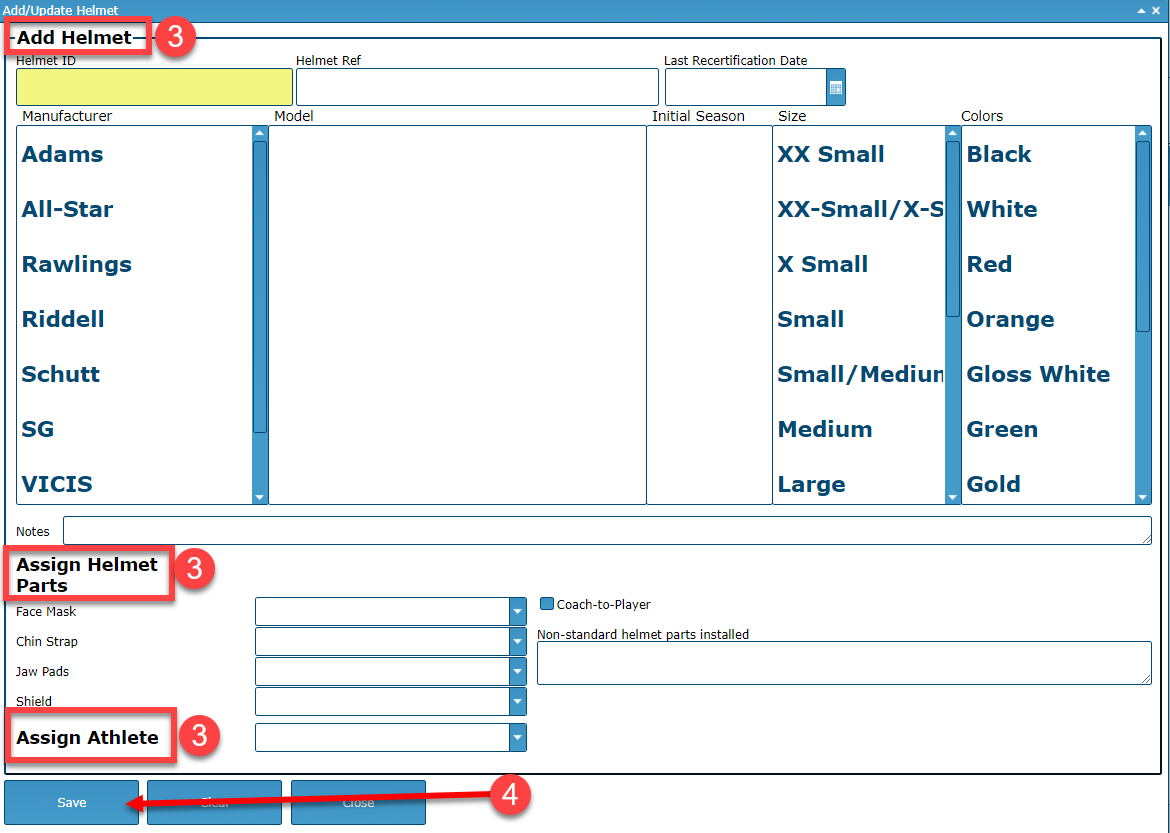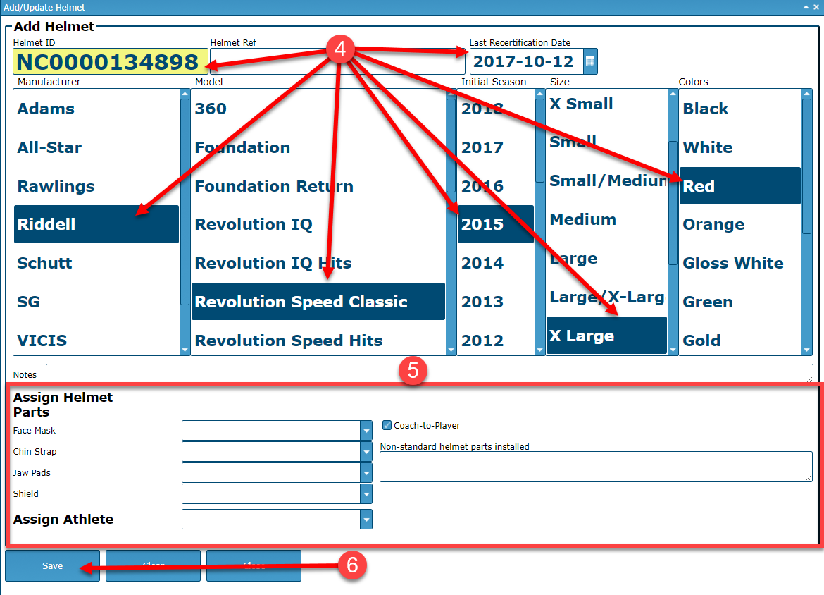 elmet, as well as the athlete t he helmet is assigned to. - Select the Save button.