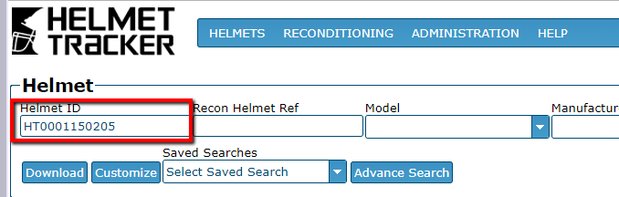 On the Helmet screen, enter the Helmet ID you wish to replace. Search.
