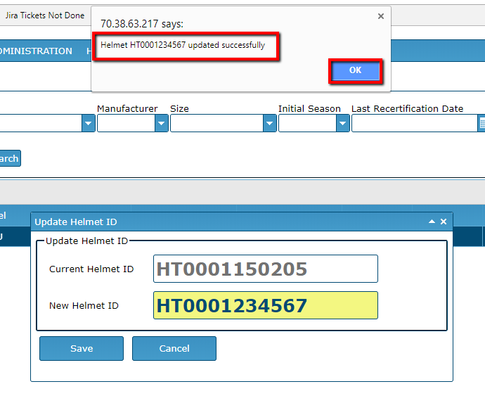 Verify that the information is accurate (new Helmet ID with appropriate helmet information).