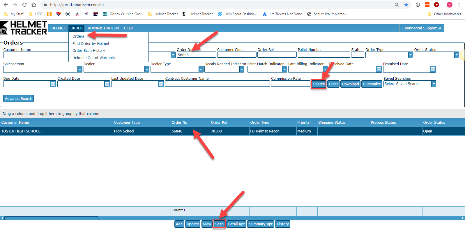 Highlight the order and select Scan at the bottom of the screen.